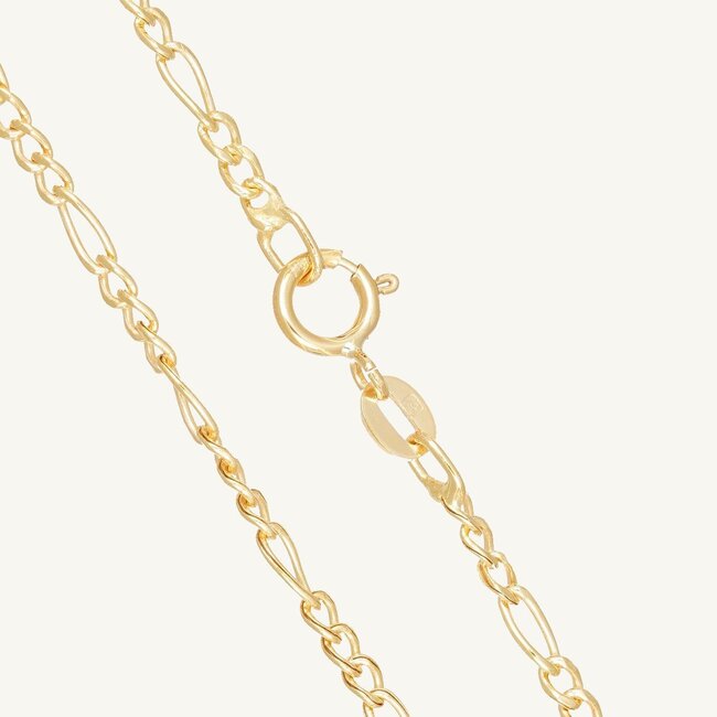 De combinatie van verschillende schakels geeft de ketting een speels en uniek karakter, waardoor deze zowel los gedragen kan worden als perfect te combineren is met een hanger.