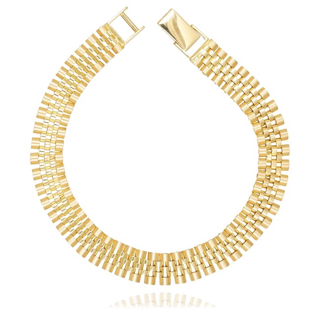 Materiaal: 18 karaat goud Type sieraad: Armband Design: Cilinder schakelstructuur Lengte: 19.5 cm Sluiting: Stevige klapsluiting Afwerking: Mat en glanzend gecombineerd