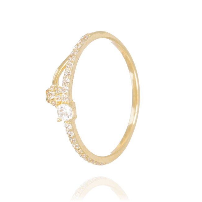 Deze ring is vervaardigd uit 18 karaat goud (750) en afgewerkt met zorgvuldig gezette zirkonia stenen. Het verfijnde ontwerp zorgt voor een elegante uitstraling en een comfortabele pasvorm.