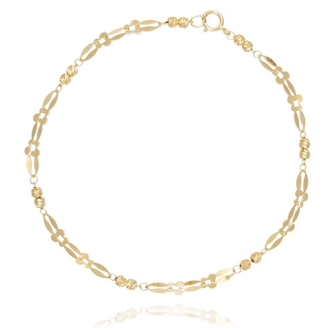 Elegante 18 Karaat Gouden Armband met Bloemvormige Schakels en Facet Bolletjes