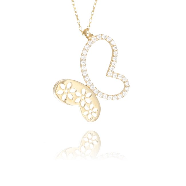 Een lief collier met extra detail door de dubbele hanger. Het zirkonia hart zorgt voor sparkle, terwijl het tweede hart met bloem-uitsparingen een zachte, elegante touch geeft. Mooi solo en ook ideaal om te layeren.