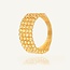 Deze gouden ring met dorika bolletjes is zo’n ring die meteen opvalt zonder overdreven te zijn. De kleine bolletjes hebben een fijne geslepen structuur, waardoor ze het licht mooi oppakken en een subtiele glans geven.