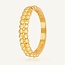 Deze gouden ring met dubbele dorika bolletjes heeft net wat meer body dan de standaard varianten. Door de twee rijen bolletjes oogt de ring voller en valt hij iets meer op, zonder dat hij te zwaar wordt.
