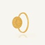 De baski resat munt geeft de ring net dat beetje extra karakter. Het is een model dat je vaak ziet bij liefhebbers van traditionele gouden sieraden, maar door de fijne afwerking blijft hij ook modern en elegant.