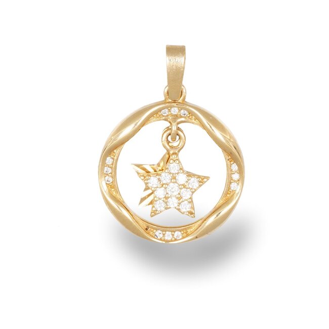 Deze schitterende 14 karaat gouden hanger in de vorm van een ster symboliseert dromen en hoop. Met een verfijnd ontwerp voegt het een sprankelende en stijlvolle touch toe aan elke outfit.