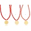 Dit collier is gemaakt van kralen met siergouden accenten (géén echt goud). Ook de sluiting is niet van goud (staal). Het collier wordt zonder munt geleverd. De munt is van 22 krt goud en kunt u los erbij bestellen. Lees meer.